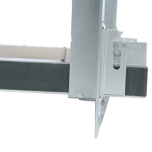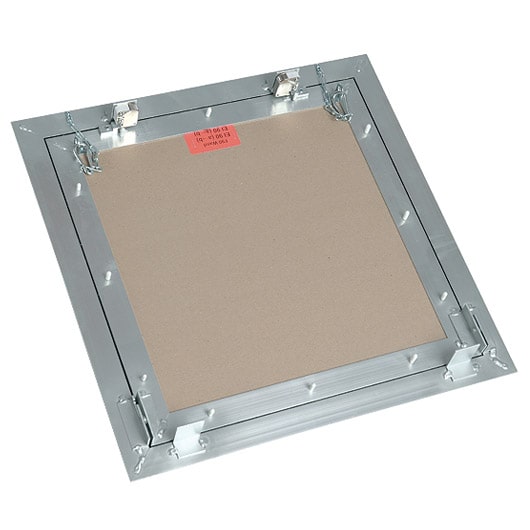 La trappe de visite est composée de deux cadres (1 fixe et 1 ouvrant) en profilés d’aluminium et d’un panneau de plâtre d’épaisseur 25mm.